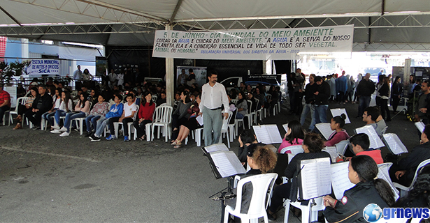 Nesta terça (5) comemora-se o Dia Mundial do Meio Ambiente. Alunos, professores, diretores, servidores públicos participaram da solenidade. Uma estrutura com tendas foi instalada.