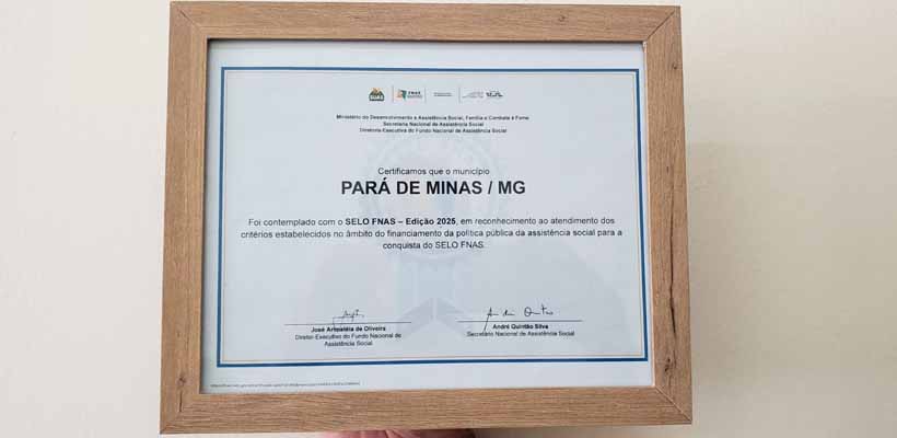 Pará de Minas foi reconhecida nacionalmente com o Selo FNAS 2025, concedido pelo Fundo Nacional de Assistência Social. A certificação destaca municípios que demonstram excelência na gestão dos recursos públicos voltados à assistência social, especialmente dentro do Sistema Único de Assistência Social (SUAS).