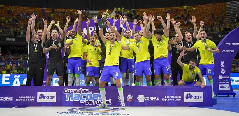 A seleção brasileira de futsal se sagrou campeã da Copa das Nações de Futsal ontem (21). A equipe garantiu o título de forma invicta, com 100% de aproveitamento em quatro partidas. Na final, o Brasil venceu a Polônia por 2 a 1, em um jogo disputado no Ginásio Nilson Nelson, em Brasília.